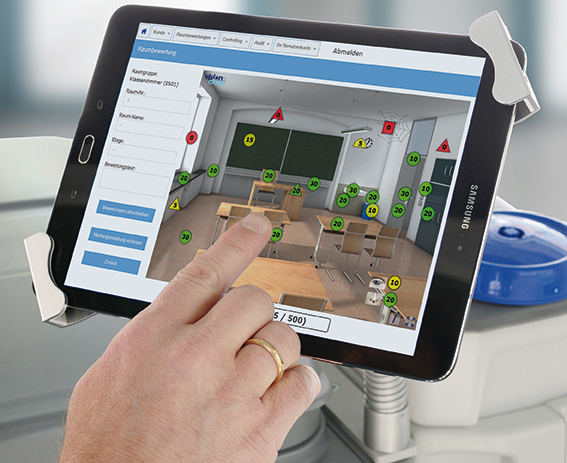 tagesaktuell, in welcher Reihenfolge und mit welchen Reinigungsarten Räume zu reinigen sind. Die Erledigung von Aufgaben wird dokumentiert. Der digitale Ablaufplan ist ein nützliches Hilfsmittel für die Anleitung von Ersatzkräften. Bei spontanen hohen Fehlzeiten kann ein priorisierter Notfallplan aktiviert werden, um sicher zu stellen, dass die wichtigsten Aufgaben erledigt werden. Die QM-Kontrollen werden vor Ort z. B. durch Hausmeister, Housekeeping- oder Hygienekräfte mit Tablets im on- oder offline Modus durchgeführt.