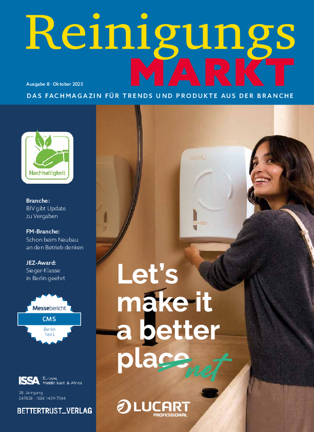 ReinigungsMarkt ist das Magazin für die Reinigungsbranche. Seit fast 25 Jahren versorgt die Fachzeitschrift Einkäufer und Entscheider mit Informationen rund um die Themen Reinigung und Hygiene.