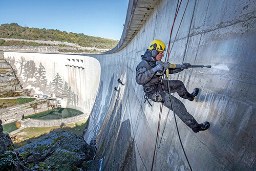 Scheuersaugmaschinen sind im Reinigungsalltag ebenfalls hohen Belastungen ausgesetzt. Ein wichtiger Aspekt ist bei der Entwicklung der Bauteile die chemische Beständigkeit der eingesetzten Materialien. Um sie zu prüfen, wird ein Bauteil für 28 Tage in alle Reinigungsmittel eingelegt, mit denen es in Berührung kommen kann. Zwischendurch wird es frischer Luft und UV-Strahlung ausgesetzt. Außerdem sind mechanische Beständigkeit und Stabilität zentral, weshalb mechanisch belastete Bauteile in der Scheuersaugmaschine auf der Rüttelstrecke oder an der Crashwand intensiv getestet werden.