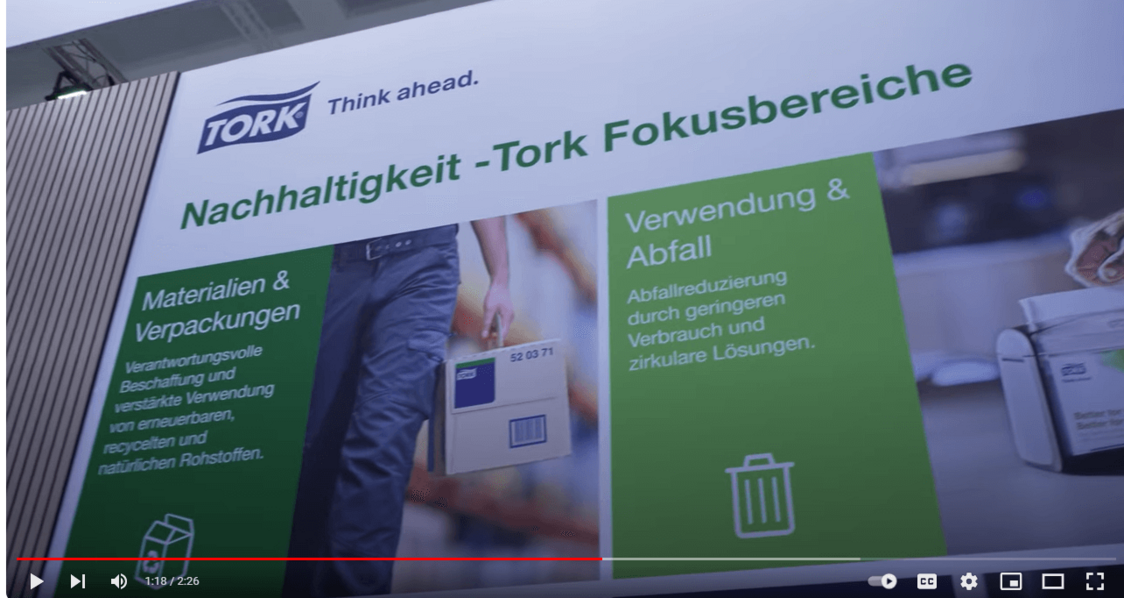 Mit diesem Produkt stellte Tork exklusiv auf der CMS ein bahnbrechendes Papierhandtuch vor, das eine bemerkenswerte Reduzierung des CO2-Fußabdrucks um 68 Prozent aufweist − ein Meilenstein, der vom TÜV Nord unabhängig bestätigt wurde. Das Tork Xpress® Multifold Handtuch behält nicht nur die außergewöhnliche Qualität bei, für die Tork Produkte stehen, sondern wird auch in einem revolutionären, CO2-emissionsfreien Papierherstellungsprozess produziert.