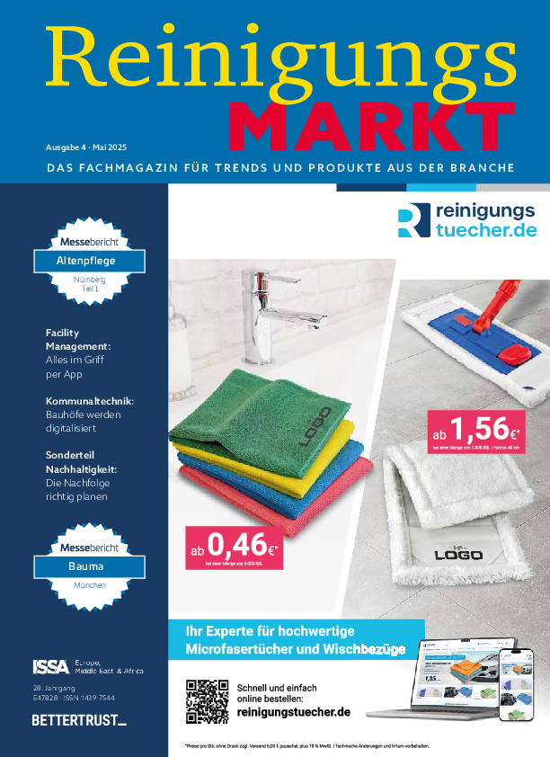 ReinigungsMarkt ist das Magazin für die Reinigungsbranche. Seit fast 25 Jahren versorgt die Fachzeitschrift Einkäufer und Entscheider mit Informationen rund um die Themen Reinigung und Hygiene.